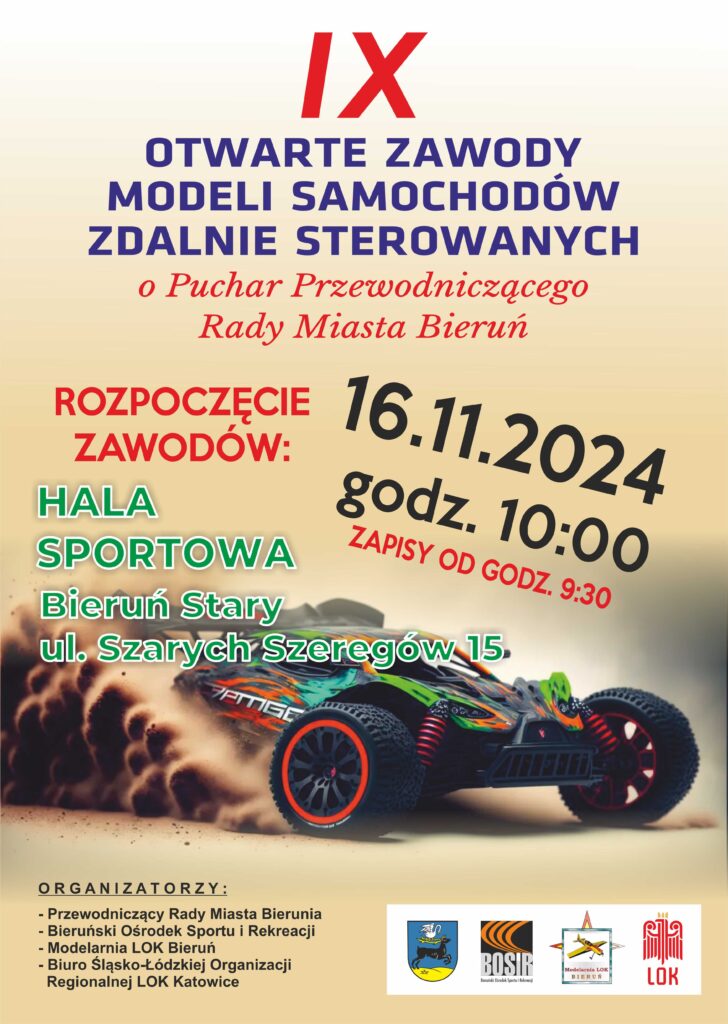 Zapraszamy na IX Otwarte zawody modeli samochodów zdalnie sterowanych o Puchar Przewodniczącego Rady Miasta Bieruń 16.11.2024
